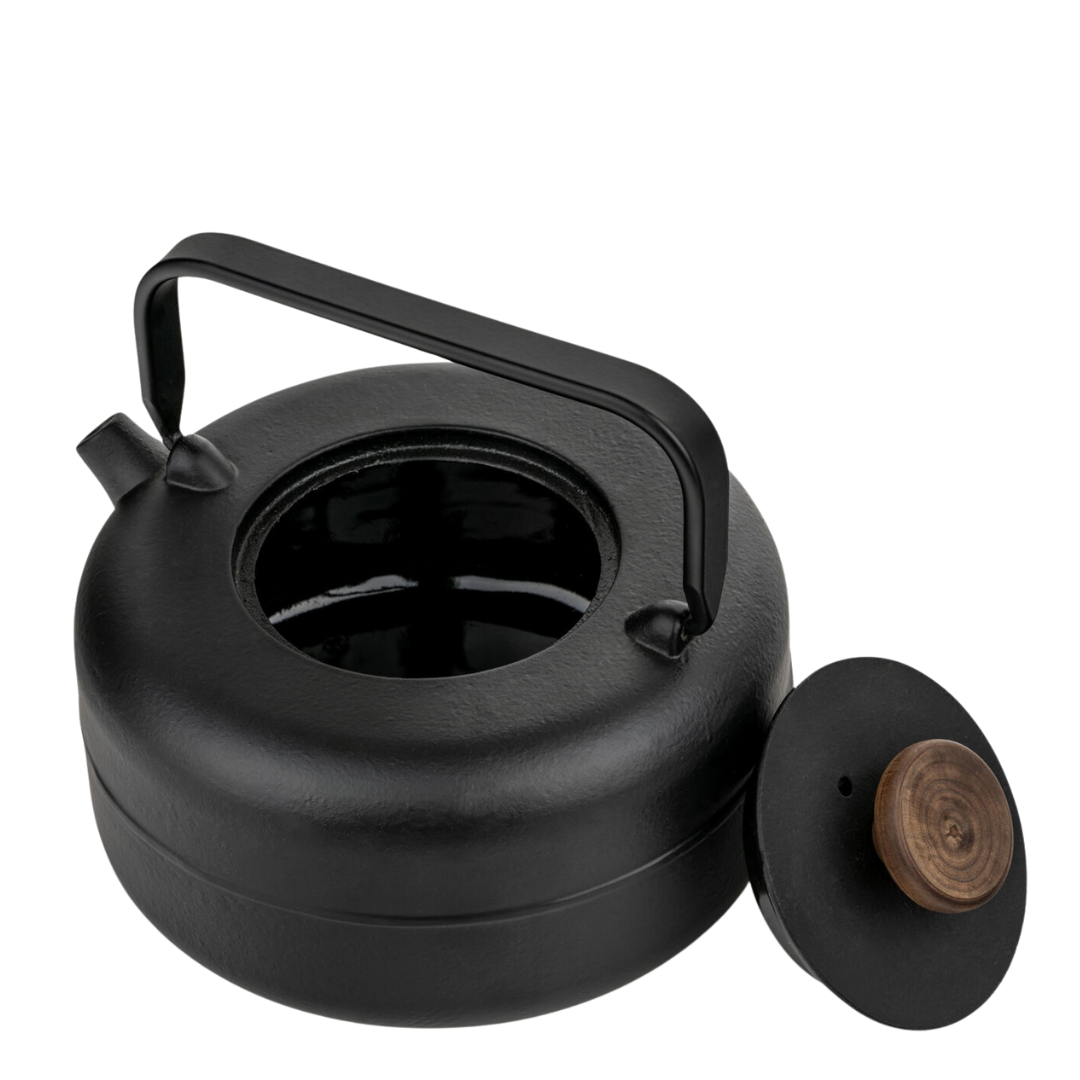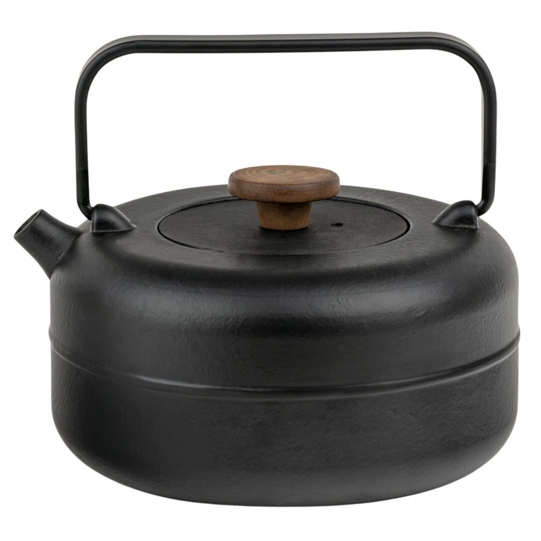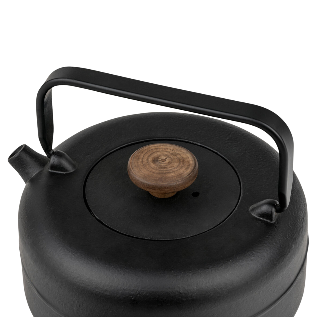 Bredemeijer Cast Iron Teapot - with Wooden Knob (0.75 liters) Tea as an oasis - stylish, durable and peaceful This cast iron teapot is designed for people who make conscious choices. For whom tea is not a rush, but a ritual of peace, attention and connection. The round, minimalist design and matte finish give the pot a calm appearance, while the wooden knob and metal handle provide natural refinement and comfort in use. The 0.75 liter teapot is ideal for long conversations or moments of silence - both alone and together. The enameled interior ensures optimal taste preservation and easy maintenance. Thanks to the fine stainless steel tea filter, you can easily brew loose tea exactly the way you like it.